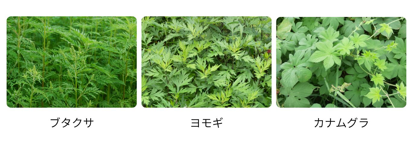 秋に飛散する花粉の主な種類には、「ブタクサ」、「ヨモギ」、「カナムグラ」があります。